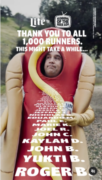 Instead of running 1 Super Bowl ad, Miller Lite ran 1,000, literally. We let fans become their own Super Bowl ad for us. Because why watch a big game ad when you can be one?